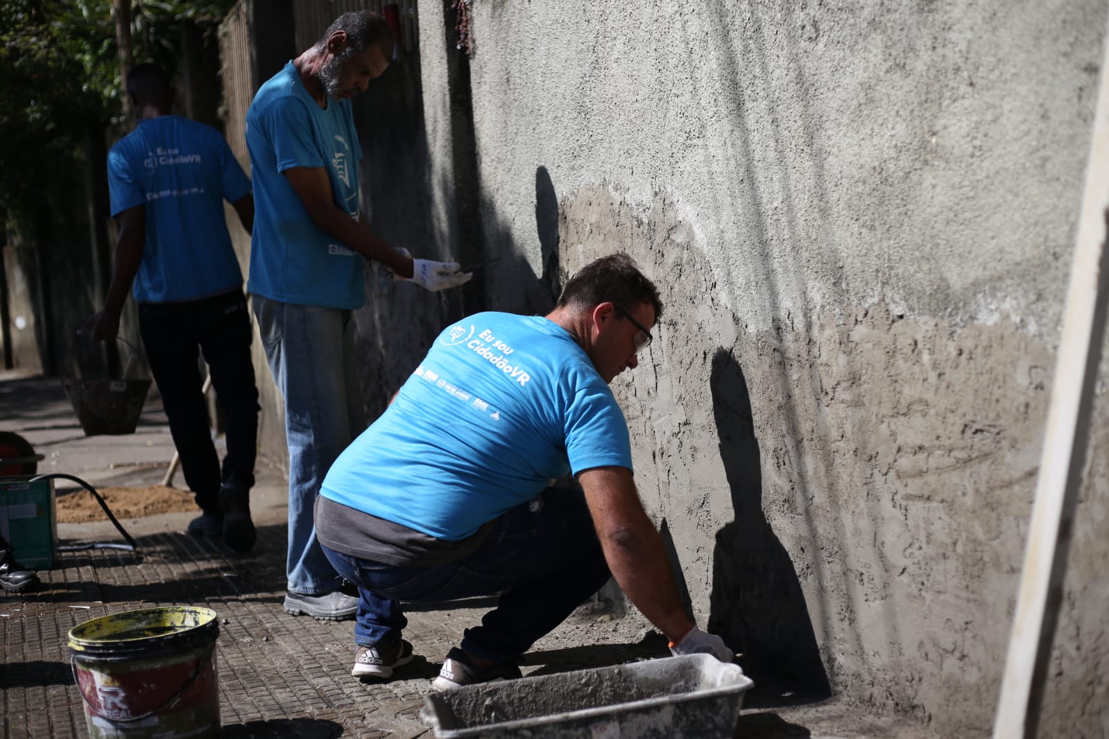Os alunos do Projeto Cidadão VR participaram nessa segunda-feira (29) da recuperação do muro do Colégio Getúlio Vargas, no bairro Laranjal, em Volta Redonda. A iniciativa integra a etapa prática da formação profissional oferecida pela prefeitura, por meio da Secretaria Municipal de Assistência Social (Smas), em parceria com a Fundação Educacional de Volta Redonda (Fevre), para pessoas em situação de rua, que puderam colocar em prática os conhecimentos adquiridos no curso de auxiliar de manutenção de construção civil.