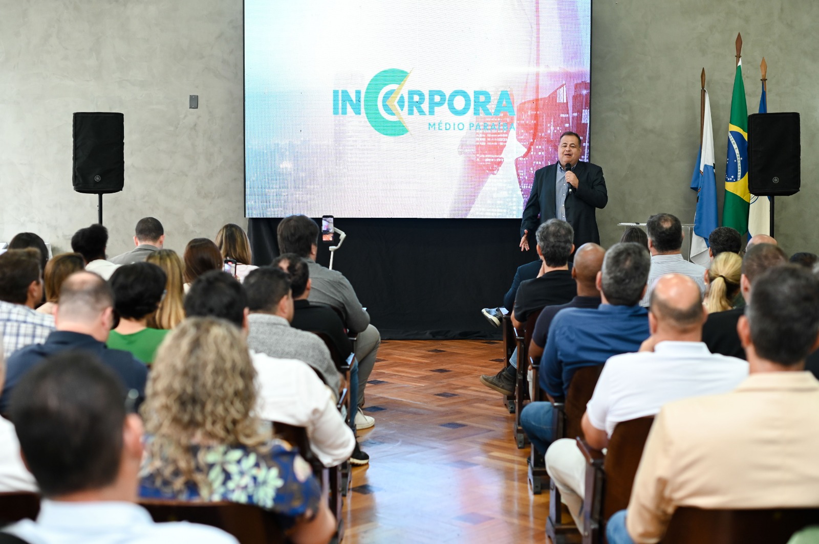 Nesta quarta-feira, dia 08, os secretários de Planejamento Urbano, Eros dos Santos, e de Desenvolvimento Econômico, Tecnologia e Inovação, Cesar de Carvalho, participaram do Incorpora Médio Paraíba, evento promovido pela Aciap-BM (Associação Comercial Industrial e Agro Pastoril de Barra Mansa) e pela Facerj (Federação das Associações Comerciais e Empresariais do Estado do Rio de Janeiro), com o apoio da Prefeitura de Barra Mansa, da Companhia de Desenvolvimento Econômico (Codebm) e da Caixa Econômica Federal. O encontro, realizado na sede da Aciap, reuniu autoridades, empresários, incorporadores e investidores para discutir as oportunidades do setor imobiliário, as recentes atualizações na legislação urbanística e o futuro do desenvolvimento urbano da região.