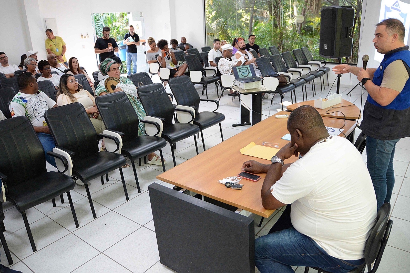 Durante a apresentação, o subtenente da Polícia Militar, Pablo Rafael, especialista em intolerância religiosa, reforçou a importância da formação continuada para agentes de segurança e do apoio direto às lideranças.
