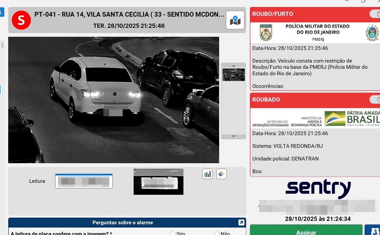 Com base nas imagens, o Centro Integrado de Operações de Segurança Pública (Ciosp) repassou as informações em tempo real às equipes da Polícia Militar e da Polícia Civil, que montaram um cerco e conseguiram interceptar o veículo nas proximidades do Parque da Cidade, no Centro de Barra Mansa.