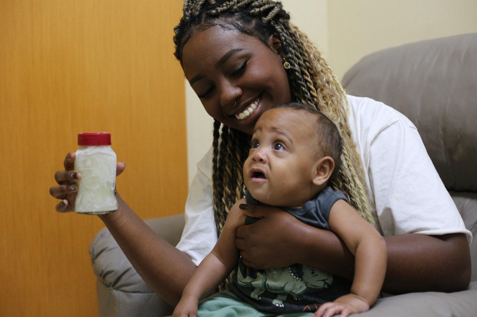 “O acolhimento é muito importante nesse momento. Achei que não tinha leite e aprendi a estimular o seio e consegui fazer a ordenha para garantir a alimentação do Benjamim por algum tempo. Depois, a internação se alongou, ele apresentou problema pulmonar, e com o estresse, o leite, realmente, secou. Mas nunca faltou o leite materno pasteurizado do Banco de Leite para ele mamar”, contou Steffani.