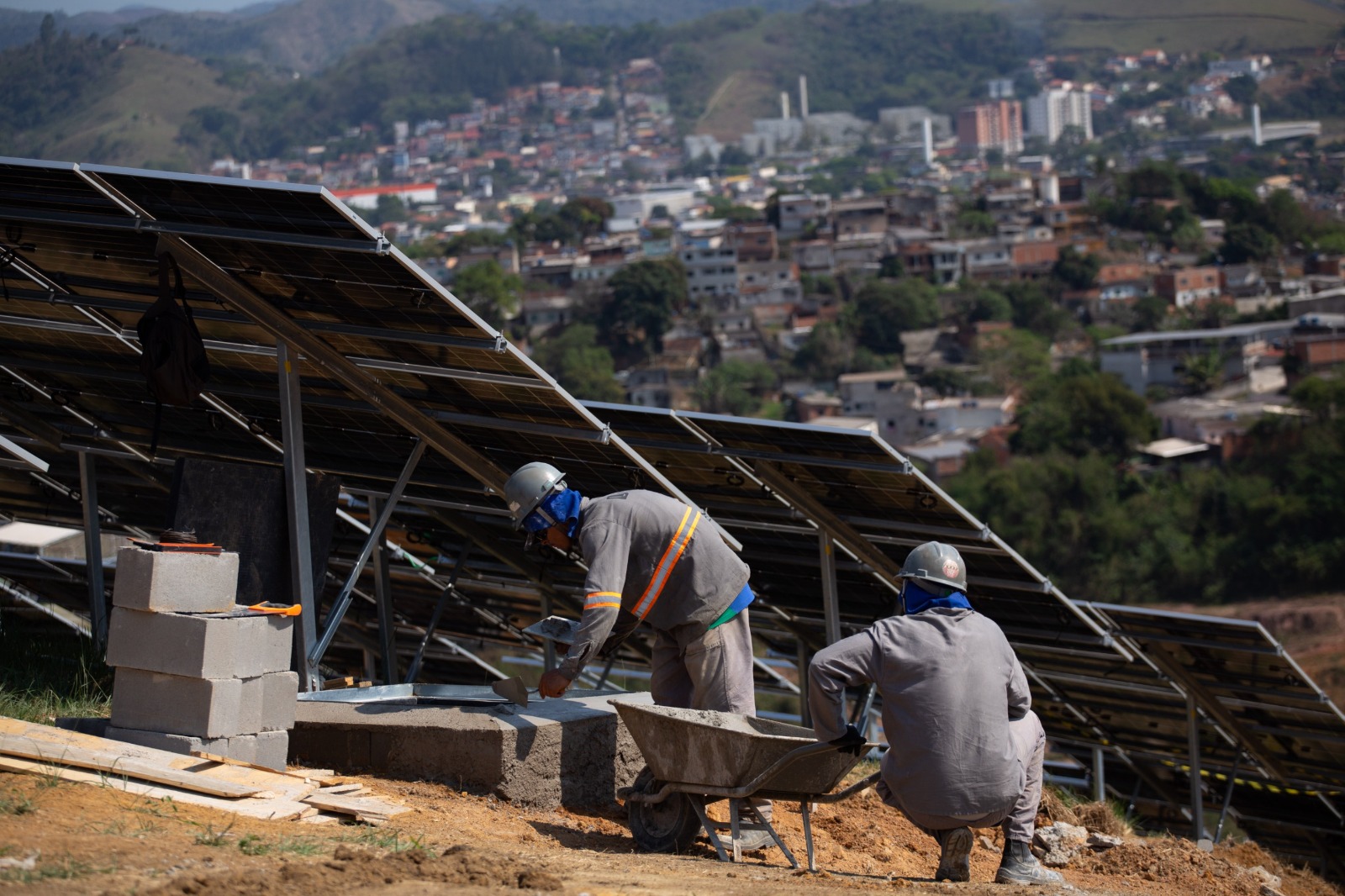 O engenheiro explica, ainda, que o local escolhido – um morro localizado na Fazenda Três Poços, com acesso pela Pedreira Volta Redonda – está virado para a direção norte, o que vai permitir uma maior captação de energia solar durante todo o ano, devido à angulação em que as placas estão sendo colocadas.