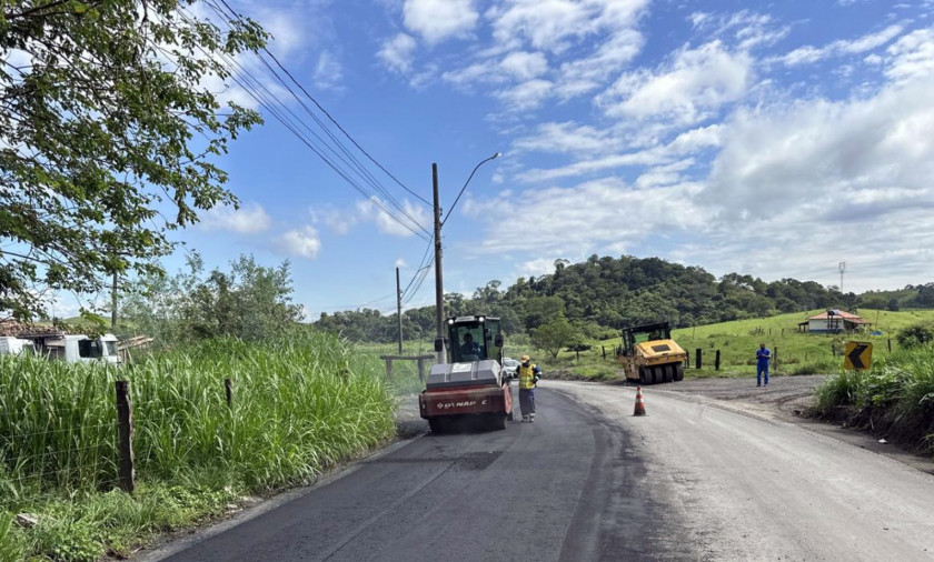 A recuperação da Estrada Francisco Vilela Arantes – via que liga o bairro Roma (Volta Redonda) ao distrito de Getulândia (Rio Claro) -, avançou nesta semana, com as equipes concluindo três quilômetros de aplicação do novo asfalto no trecho de Volta Redonda. Apesar da chuva dos últimos dias, os trabalhos prosseguem em uma das faixas da pista.