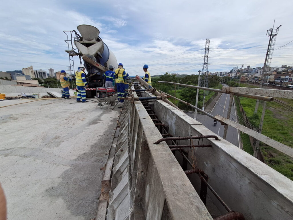 As equipes seguem também atuando na interligação efetiva entre a alça e o corpo do viaduto principal, para que posteriormente seja realizada a pavimentação asfáltica, iluminação, drenagem pluvial, além de instalação das sinalizações horizontal e vertical.