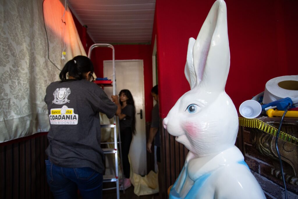 O gestor do Banco da Cidadania, Ricardo Balarini, responsável pela organização do evento, destaca o cuidado na construção de cada detalhe desta edição. “A gente pensou em uma decoração diferente, mais imersiva, aproveitando a estrutura que já tínhamos, mas trazendo novos elementos, como os cataventos, a iluminação e peças maiores. A ideia é que as famílias cheguem aqui e realmente se sintam dentro de um ambiente de Páscoa, com muitas opções para fotos e momentos especiais”, afirmou.
