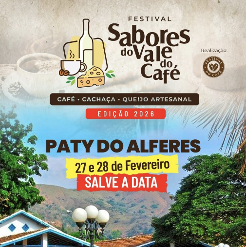 Nos dias 27 e 28 de fevereiro, Paty do Alferes vai receber a primeira edição do Festival Sabores do Vale do Café de 2026. O anúncio foi feito pelo secretário de Estado de Turismo do Rio de Janeiro, Gustavo Tutuca; pelo presidente da TurisRio, Sérgio Ricardo; pelo assessor especial da Setur-RJ, Wanderson Farias; e pelo secretário de Turismo de Paty, Pedro Medeiros.